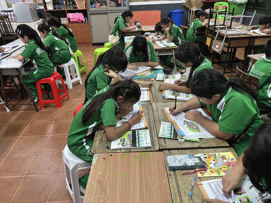2.3กิจกรรม "คู่ตรวจสอบงานเขียน (Peer-check/Peer-Edit)": นักเรียนสลับกันตรวจงานเขียนของเพื่อนโดยดูเรื่องการใช้คำกริยาและโครงสร้างประโยคตามเกณฑ์ที่ครูกำหนด